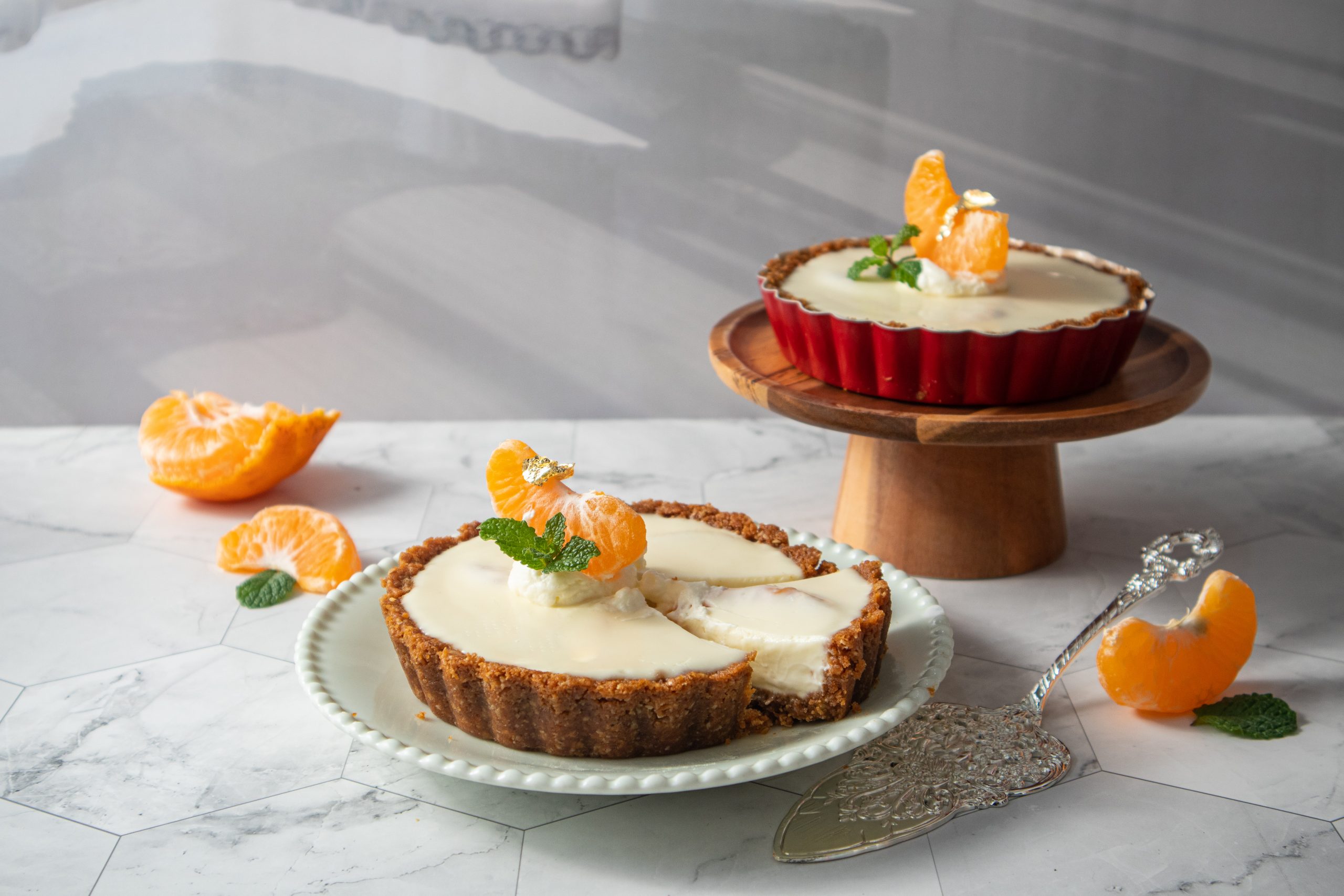 乳酪塔曾經在台灣市場掀起一陣排隊風潮,想在家自行烘焙這款點心,步驟繁瑣,常令人望而卻步。然而,如果不一定要吃熱騰騰的口味,冰冰涼涼也能美味品嘗的生乳酪派,不需用到烤箱,製作時間及難度也相對來得低。趁著現在柑橘類水果當令盛產,來做一個橘香滿溢的生乳酪派吧!