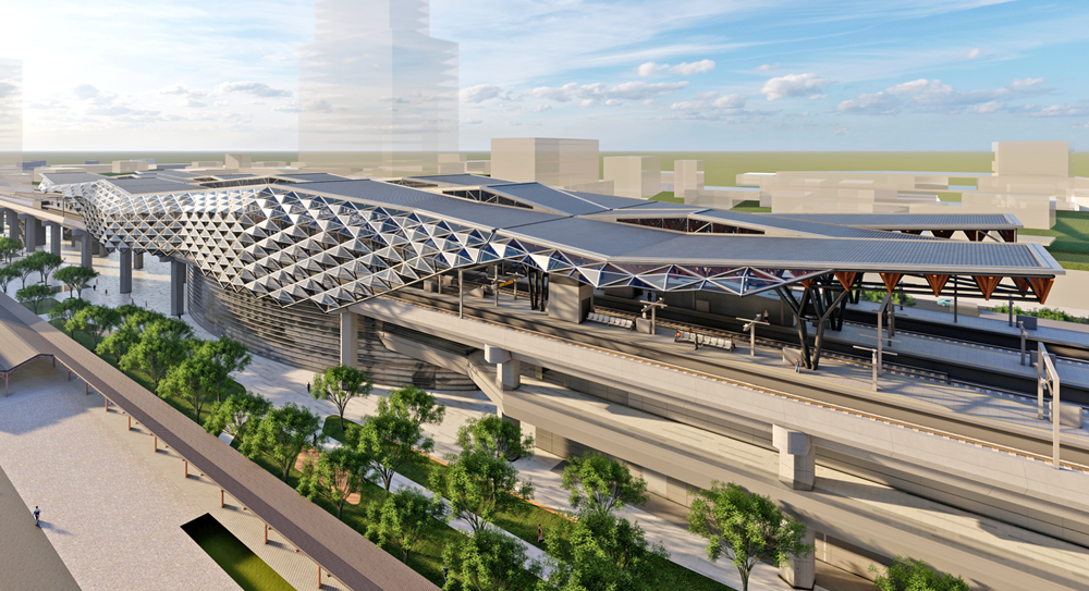 「嘉義市區鐵路高架化計畫」建築,全線以「森林珠鍊」為設計概念,引進嘉義阿里山特有壯闊景觀為象徵,將在地特色山稜線、雲海、林相,設計轉化為建築天際線、菱形玻璃帷幕、都市森林公園,形塑屬於出嘉義的空間語彙與在地特色。