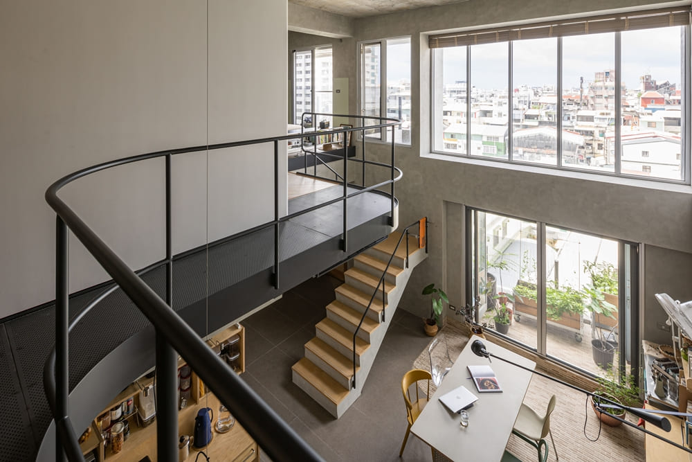 謝仲凱的工作室就在主臥的另一頭,工作時還可以抬頭平視著窗外放鬆,樓高6米的雙層小家庭,每個成員都有他們各自靜心與交流的空間。