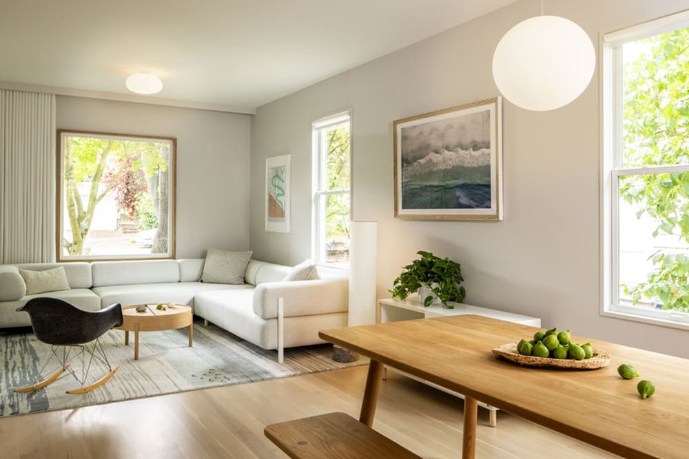 這座興建於1907年的雙層獨棟小屋,坐落於西雅圖Phinney Ridge寧靜的社區中,四周被古老的綠意樹木環抱,有著斜屋頂造型、精緻建築尺寸和田園詩歌般的設計,散發著宛如森林童話小屋般的靜謐氛圍,被暱稱為「Phinney Mini」。然而,過於老舊不敷使用的風格形式,以及可能會產生危險的安全結構,讓屋主一家人決定委請Best Practice Architecture,為其重新規劃打造一座滿足現代居家生活的嶄新生活情境。