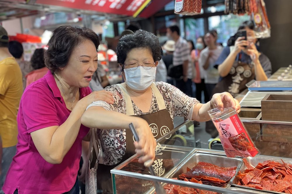 「上海火腿和萬有全的火朣、火方都很好,我會輪流買;阿萬青菜號什麼蔬菜都能買到,東門市場就不能隨時買到豌豆米。」講著聊著,金龍肉乾創始店的老闆娘塞了一袋肉乾來,萬有全的老闆聊著哪個攤位的位子挺好,這種恰到好處的熱絡,正是傳統市場才有的人情味。