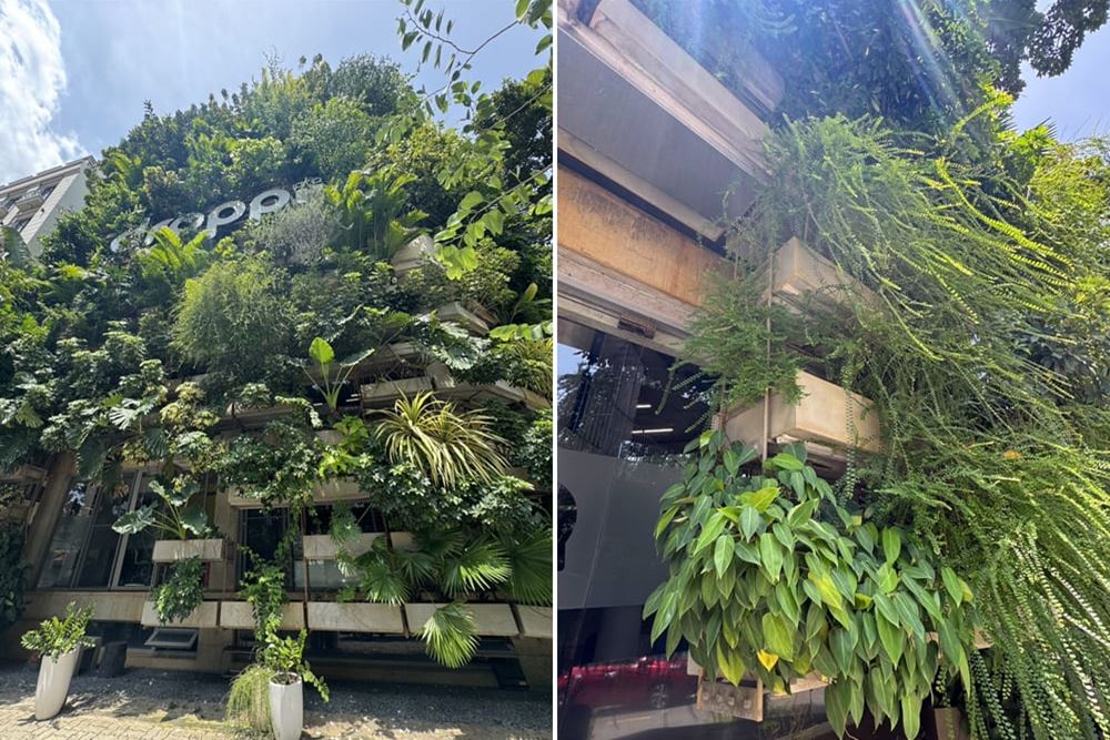 這裡曾是武仲義事務所的所在地,外牆覆滿綠意。他並非讓藤蔓隨意攀附,而是藉由結構盒的設計,讓植物能在建築表皮上直接生根生長,展現出自然與建築共生的姿態。