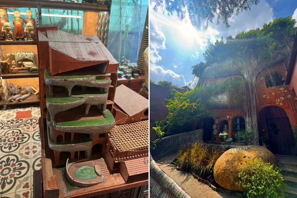 另一棟 Mặn Mòi 餐廳號稱「宮崎駿城堡」,在筆者眼中更像一座樹屋:樓梯掛在外牆,行走時隔著一層植生牆。禮品店裡還展示著建築模型,清楚呈現整棟建築的結構關係,地點距離戰爭遺跡博物館僅步行一分鐘。