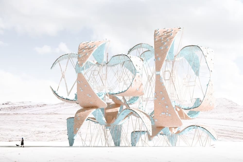 ↑曼努埃爾在2017年創作的《風景中的藝術》3D 藝術,以不斷地轉型與演化為核心概念。(圖片出處:Monteserín Architects)