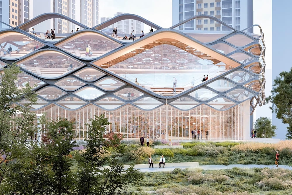 ↑韓國松島圖書館的2021年競圖,試圖在圖書館的傳統用途與當代新用途之間保持平衡。(圖片出處:Monteserín Architects,© SHOW ME THE PROJECT)