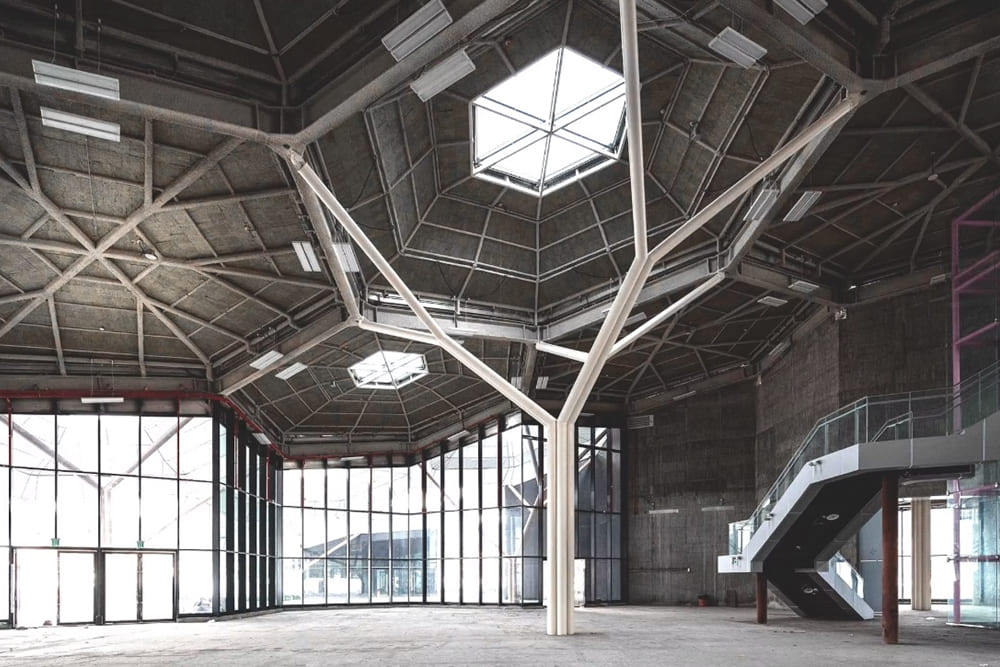 ↑展覽中心借鑑德國結構技師弗雷.奧托(Frei Otto)的大跨度設計,透過樹狀柱體與六邊形模組,構築出開放而具彈性的空間。(圖片出處:Monteserín Architects,© Yi-Hsien Le)