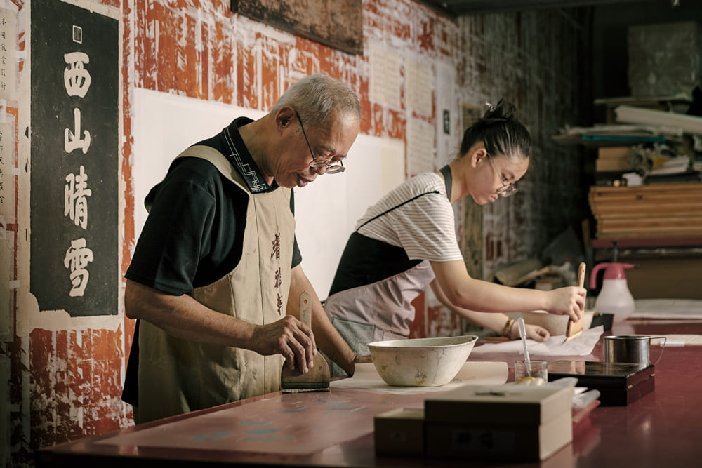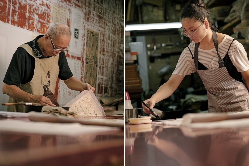 ↑(左)紙類修復師 吳哲叡;(右)「睿雅軒」工作室見習弟子 葉沛吟。