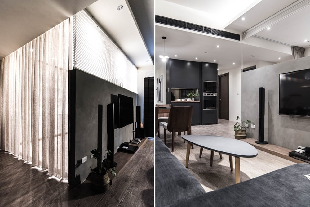 而軟隔間的手法多種,比如保留互動感又維持一定隱私「半高牆」,常用於書房或工作區,以及低成本的「拉簾」適合臨時性或短期需求,未來再升級為硬隔間也容易,也是不錯的選擇。