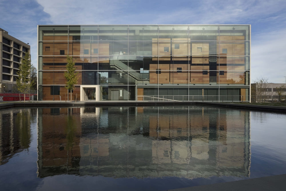 對於連結地點、文化與歷史方面,普林斯頓大學的路易斯藝術中心(Lewis Center for the Arts, Princeton University)展現了材料的實驗性與在地關聯,並未使用當地傳統的紅磚,而是大膽選擇板岩和半透明玻璃,既是對材料性的實驗,也創造了獨特的視覺效果。
