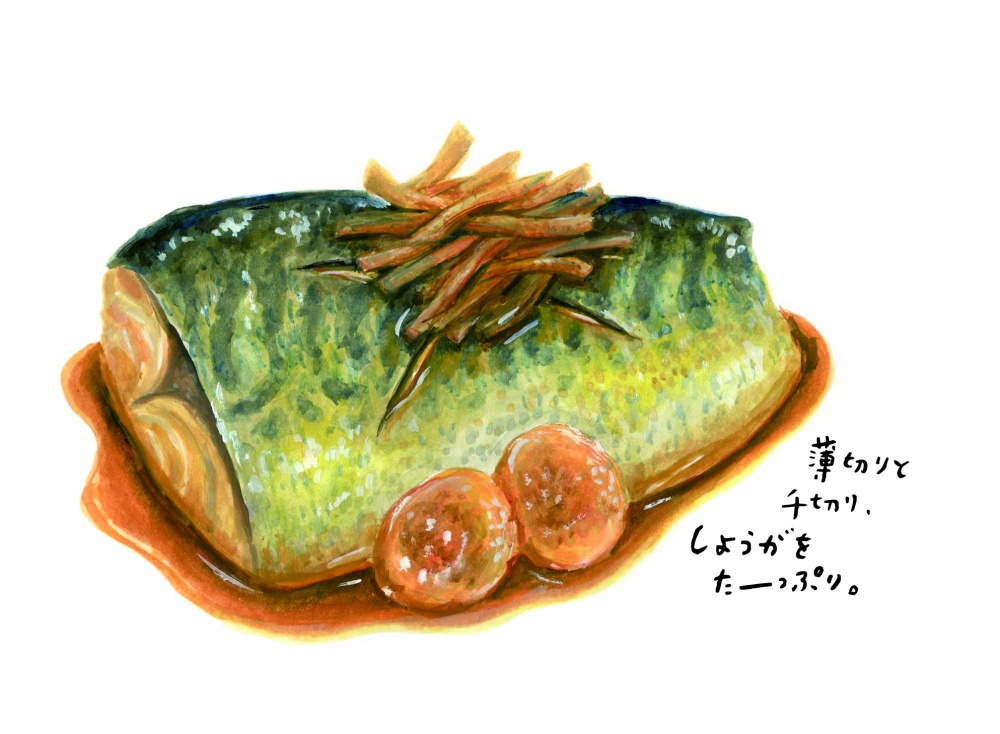 在那裡吃到的燉煮鯖魚,真是衝擊性的。用醬油燉煮到甜甜鹹鹹的鯖魚,油脂正好,非常下飯。菜單上只有「燉鯖魚定食」和「每日定食」兩種。每日定食是阿姨的即興作品,完全吃不膩。於是,我每天都去那裡報到。阿姨是那種一心只想讓人吃到「她覺得美味的食物」的那種人。後來我到京都工作的機會變少,阿姨每次發現什麼好吃的,也還是會寄給我。河內晚柑、豆大福、豬肉饅頭、白葡萄……她的守備範圍很廣。