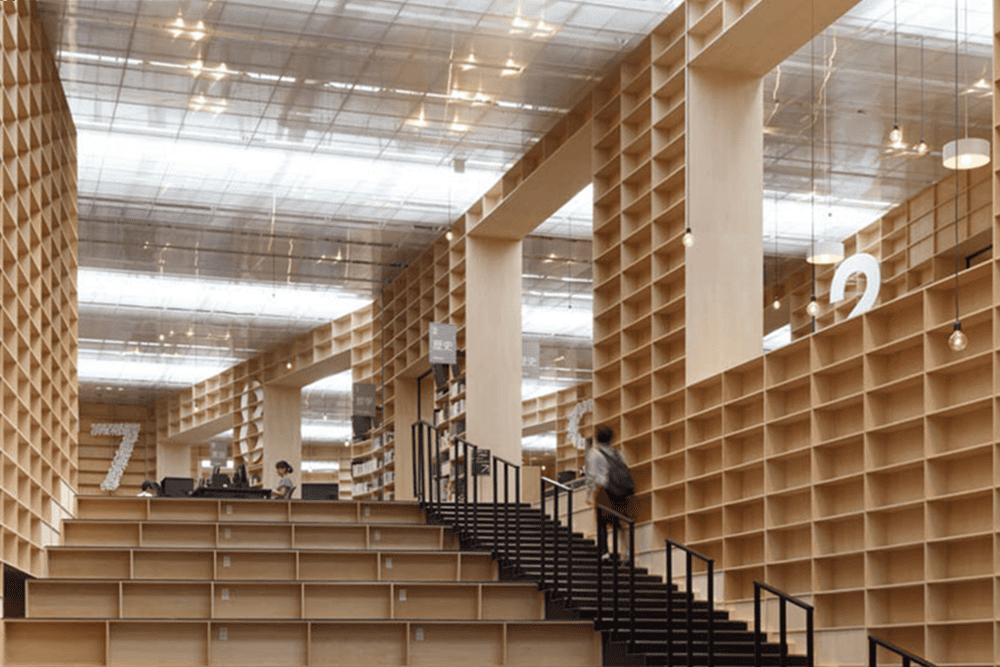 來到位於東京近郊的「武藏野美術大學美術館.圖書館」,藤本壯介重新思考「閱讀」這件事如何發生。層層展開的水平空間取代了明確的樓層劃分,書架成為結構的一部分,也成為視線與行走的引導。人在其中並非被安排到某個座位,而是在走動、翻閱與短暫停留之間,慢慢進入閱讀的狀態。知識不再被收納於安靜的角落,而是自然地散布在光線與空氣流動之中。