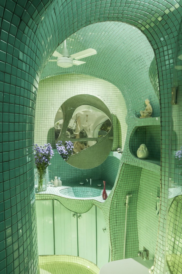 雖然這座建築充滿曲線的花園宅邸具備了相當高的藝術性,但畢竟是實際使用的住宅,因此仍然兼具了實用性,不僅高明地使用石板用來裝飾壁面並作為收納層板,還特別設置了人人稱羨的超大長形衣帽間,一整面牆都是收納空間,不怕物品太多溢出層櫃,破壞室內外的景致,得以長久維持初落成時的夢幻美麗。打造龐畢度中心的義大利設計師Renzo Piano曾說:「建築最美的地方之一,就是每一次都像生命重新開始一樣。」(One of the great beauties of architecture is that each time it is like life starting all over again.)The White Room Studio設計團隊也期許自己的創作,非但能給人一個舒適的家,更能帶給人全新的希望。