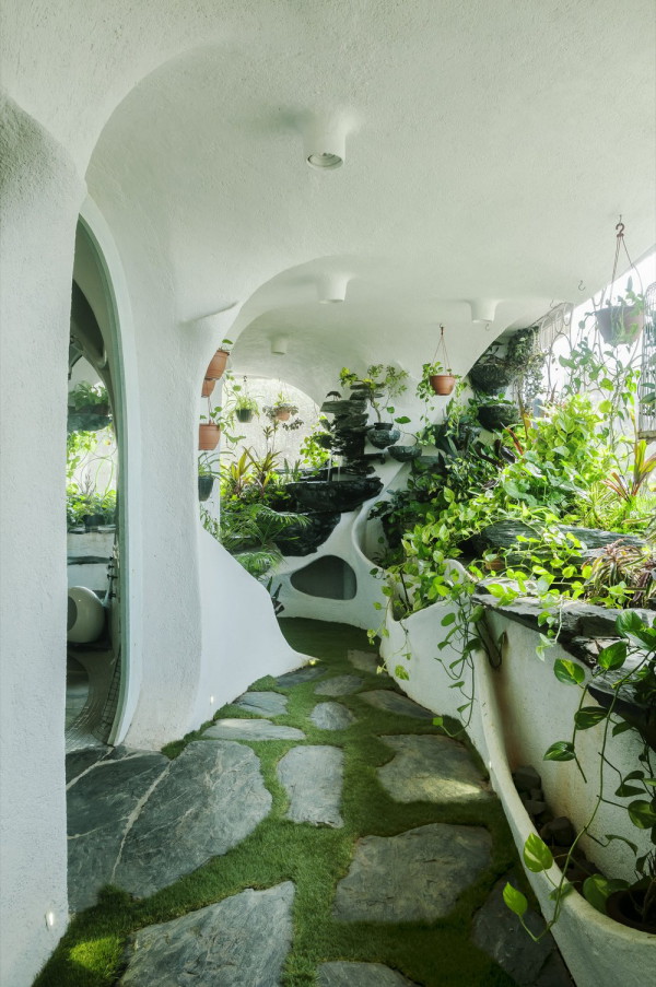 住在一間被植栽花卉圍繞的夢幻宅邸,相信應該是許多人的夢想,而駐印度孟買的建築設計團隊The White Room Studio,就替當地一對注重品味的時髦夫婦完成了這個心願,在住宅區Pali Hill量身打造了一座名為「Garden Room」的花園宅邸,以設計團隊經典的曲線線條建構而成,人為仿造自然地形與石窟的樣態,給予人相當強的視覺衝擊。