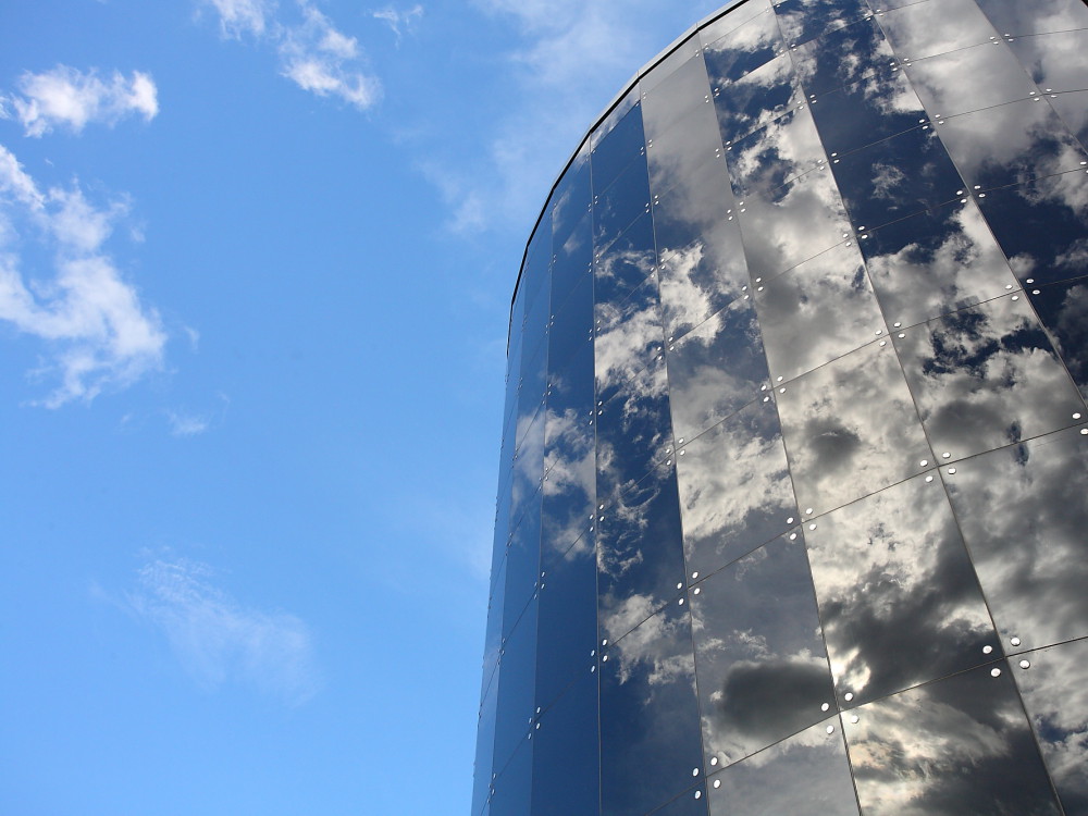 大樓外的立面設計,靈感來源自台灣原生樹種—樟樹,再搭配沖孔鋁板設計,有遮陽及降低風壓的效果,再加上太陽能發電的LED崁燈,晚間點點星光,製造另一種不同於白天的浪漫氛圍。至於立面玻璃以Double Low-E低幅射玻璃,冬暖夏涼的特性有助於節能減碳。