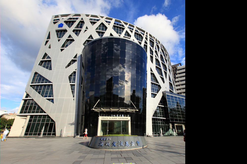 海峽交流基金會辦公大樓作為對外事務交流協商的場域,在建築設計上融入在地紋理,並符合低調平實、人性兼具科技與意涵指標等三項原則。就整體大樓外觀而言,以唐山過台灣的典故為由,從上而下俯瞰為「木船」造型;戶外的山水造景則是阿里山和日月潭的象徵;挑高二十一公尺的迎賓大廳則意味著「抬起頭來看台灣」。